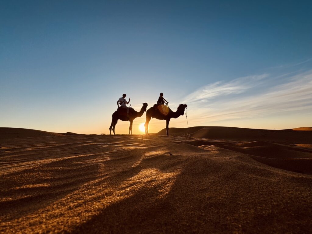 夕方にはメルズーガに到着。ラクダに乗って砂漠の真ん中へ出発。美しい砂漠の夕日をお楽しみください。